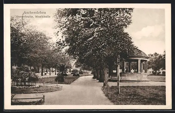 AK Aschersleben, Strasse Herrenbreite mit Musikhalle
