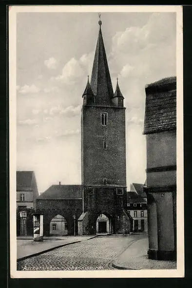 AK Aschersleben, Strassenansicht mit Johannisturm