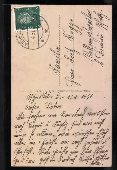 alte Ansichtskarte, gelaufen 1931, Eckknick oben re., guter Zustand