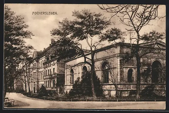 AK Aschersleben, Strassenpartie mit grossem Gebäude