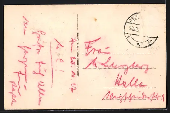 alte Ansichtskarte, gelaufen 1907, Briefmarke entfernt, rückseitig Oberflächenschaden, guter Zustand