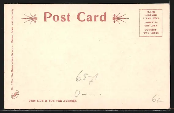 Personenbezogene Daten auf der Rückseite der Karte wurden durch blauen Textmarker unkenntlich gemacht. Die blauen Stellen sind auf die Vorderseite durchgeweicht und wirken sich negativ auf das Postkartenfoto aus