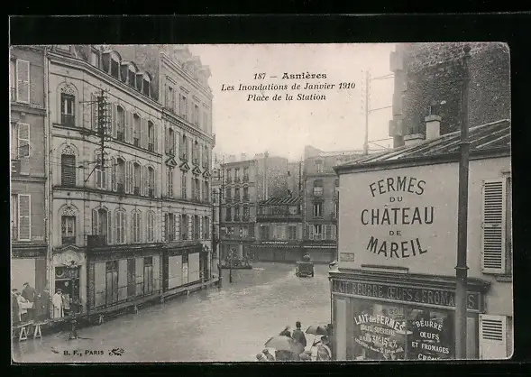 AK Asnières, Les Inondations de Janvier 1910, Place de la Station