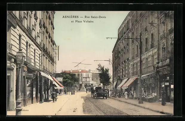 AK Asnières, Rue Saint-Denis et Place Voltaire