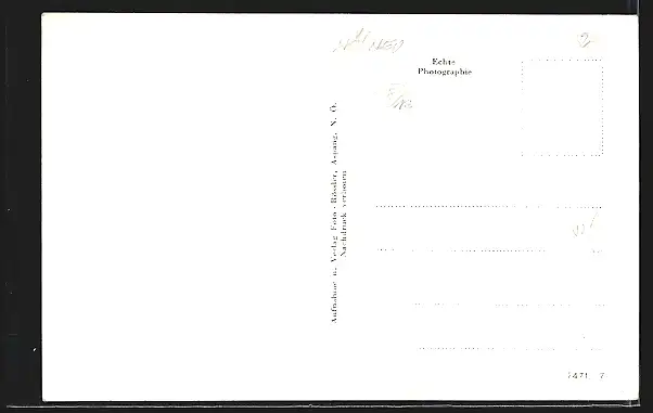Personenbezogene Daten auf der Rückseite der Karte wurden durch blauen Textmarker unkenntlich gemacht. Die blauen Stellen sind auf die Vorderseite durchgeweicht und wirken sich negativ auf das Postkartenfoto aus