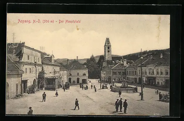 AK Aspang /N.-Ö., Passanten am Hauptplatz