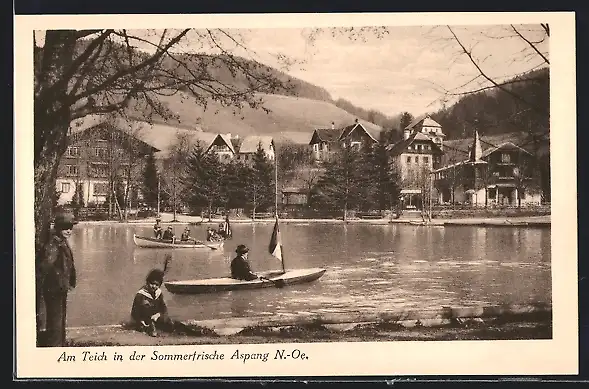 AK Aspang /N.-Oe., Ruderer auf dem örtlichen Teich