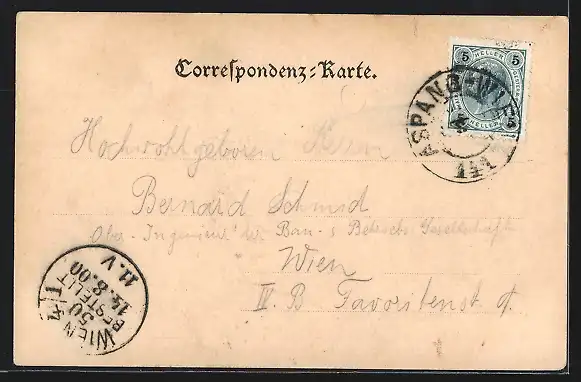 alte Ansichtskarte, gelaufen 1900, Stempelspur, guter Zustand