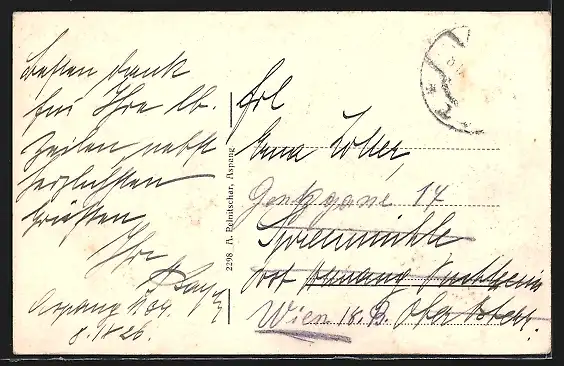 alte Ansichtskarte, gelaufen 1926, Briefmarke entfernt, rückseitig Oberflächenschaden, Eckknick re. unten, guter Zustand