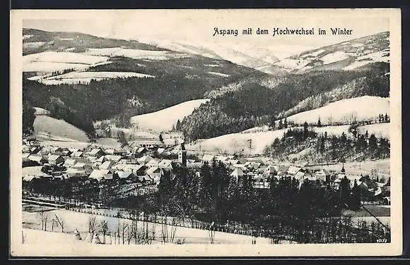 AK Aspang, Ortsansicht mit Hochwechsel im Winter