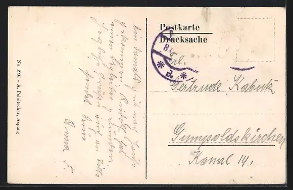 alte Ansichtskarte, gelaufen, Briefmarke entfernt, guter Zustand