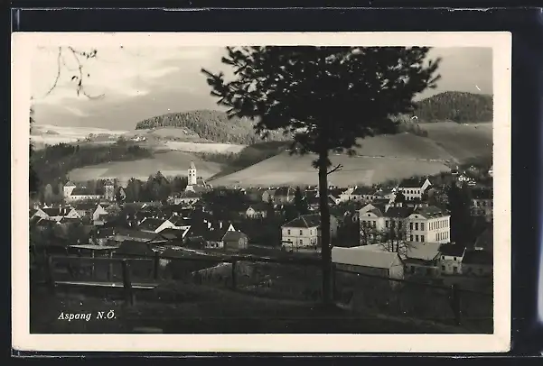 AK Aspang, Ortsansicht mit Kirche aus der Vogelschau