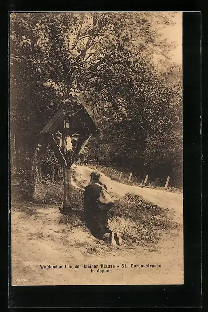 AK Aspang, St. Coronastrasse, Waldandacht in der kleinen Klause