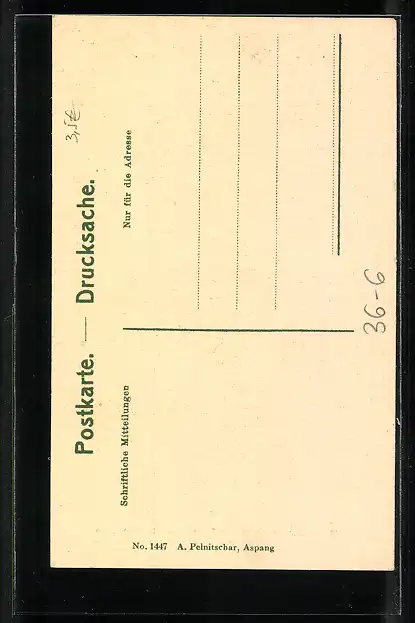 Personenbezogene Daten auf der Rückseite der Karte wurden durch blauen Textmarker unkenntlich gemacht. Die blauen Stellen sind auf die Vorderseite durchgeweicht und wirken sich negativ auf das Postkartenfoto aus