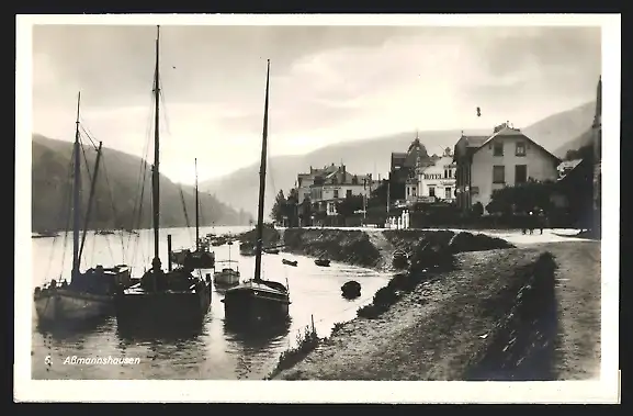 AK Assmannshausen, Ortsansicht mit Uferpartie