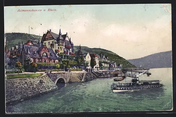 AK Assmannshausen / Rhein, Partie am Rheinufer
