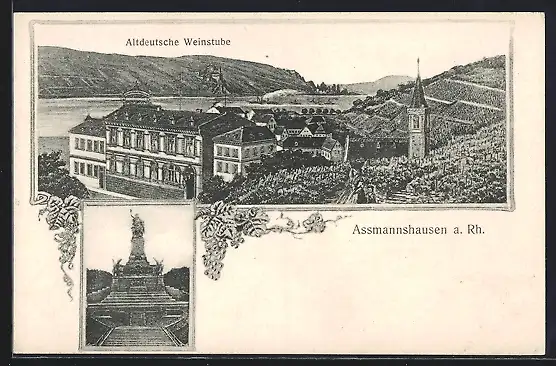 AK Assmannshausen a. Rh., Gasthaus Altdeutsche Weinstube, Denkmal
