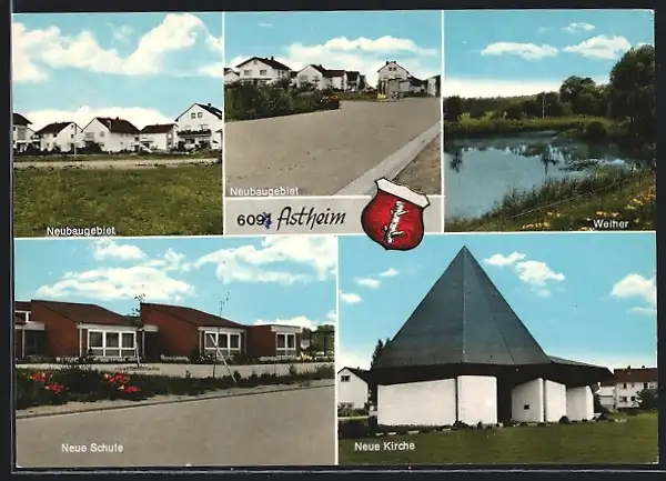 AK Astheim / Hessen, Neue Schule, Neue Kirche, Weiher
