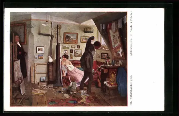 AK Atelierbesuch von Mann bei einem Maler mit Familie