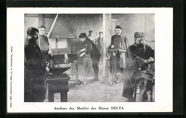 AK Ateliers des Mutilés des Bijoux Delta, Kriegsversehrte bei der Arbeit