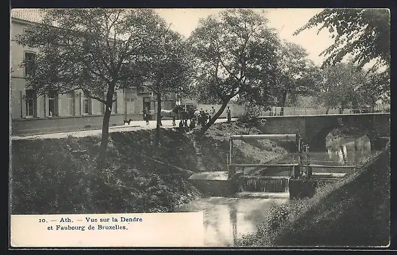 AK Ath, Vue sur la Dendre et Faubourg de Bruxelles