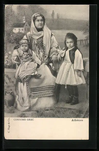 AK Athènes, Frau und Kinder in traditioneller griechischer Kleidung