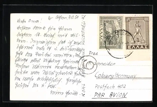 alte Ansichtskarte, gelaufen 1951, Eckknick oben rechts, guter Zustand