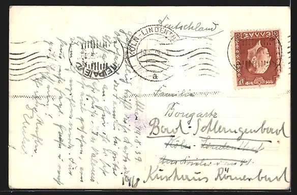 alte Ansichtskarte, gelaufen 1939, Einriss re. unten, guter Zustand