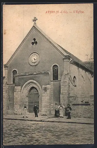 AK Athis, L`Église et ses visiteurs devant l`entrée