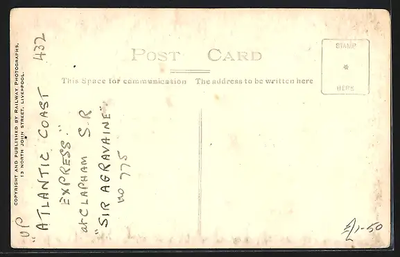 AK Atlantic Coast Express at Clapham, Southern Railway engine no. 775 Sir Agravaine