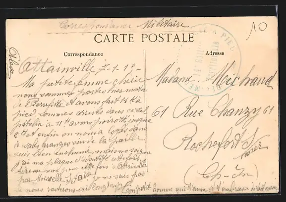 Personenbezogene Daten auf der Rückseite der Karte wurden durch blauen Textmarker unkenntlich gemacht. Die blauen Stellen sind auf die Vorderseite durchgeweicht und wirken sich negativ auf das Postkartenfoto aus