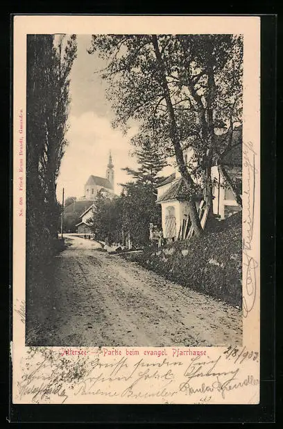 AK Attersee, Partie beim evangel. Pfarrhaus