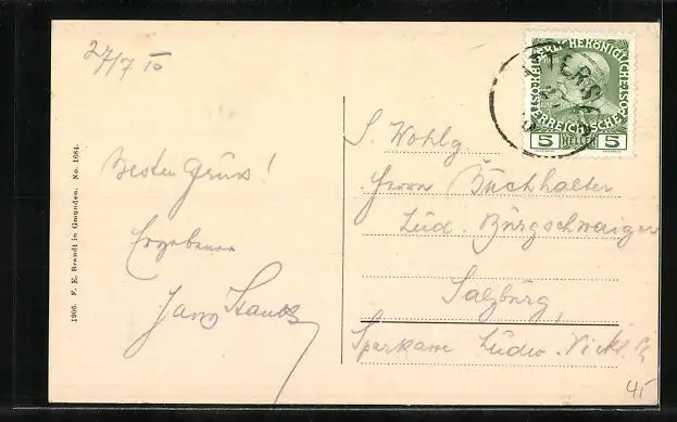 alte Ansichtskarte, gelaufen 1910, guter Zustand