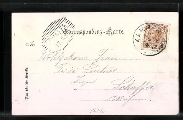 alte Ansichtskarte, gelaufen 1899, Eckknick li. oben, guter Zustand
