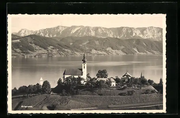 AK Attersee, Uferpartie mit Kirche