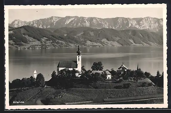 AK Attersee, Uferpartie mit Kirche