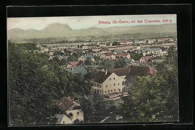AK Attnang /Ob.-Österr., Ortsansicht mit dem Traunstein