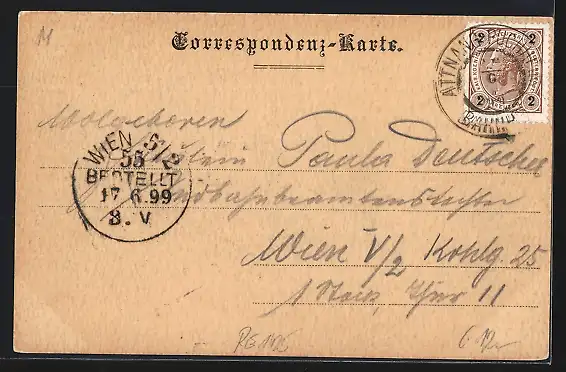 alte Ansichtskarte, gelaufen 1899, guter Zustand
