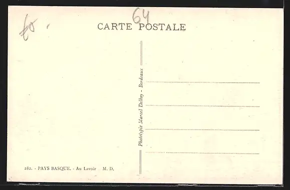 Personenbezogene Daten auf der Rückseite der Karte wurden durch blauen Textmarker unkenntlich gemacht. Die blauen Stellen sind auf die Vorderseite durchgeweicht und wirken sich negativ auf das Postkartenfoto aus
