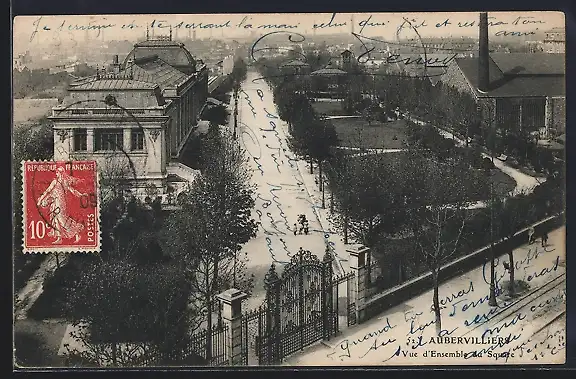 AK Aubervilliers, Vue d`ensemble de la rue et des jardins environnants