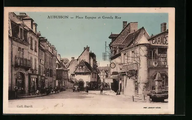 AK Aubusson, Place Espagne et Grande Rue