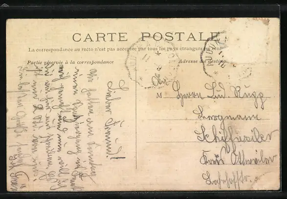 alte Ansichtskarte, gelaufen, Briefmarke entfernt, rückseitig Oberflächenschaden, guter Zustand