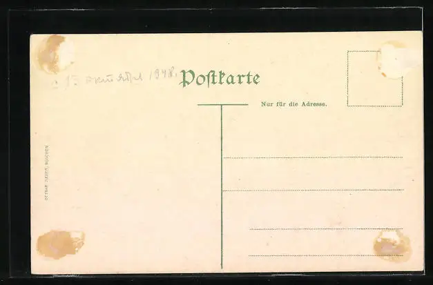 alte Ansichtskarte, ungelaufen, rückseitig Klebe- und Papierreste, rückseitig Oberflächenschaden, guter Zustand