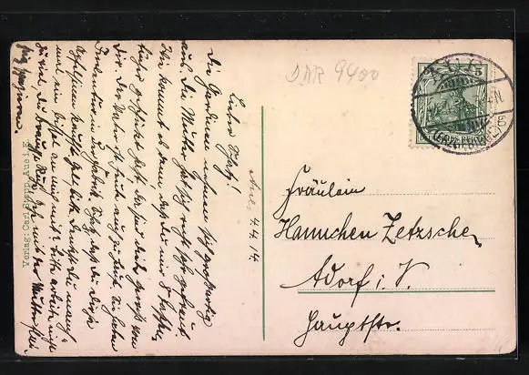 gelaufen 1914, Eckknick oben rechts, guter Zustand