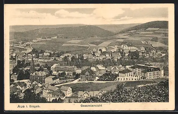AK Aue i. Erzgeb., Gesamtansicht mit Kirche