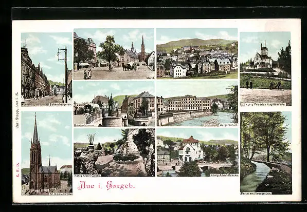 AK Aue i. Erzgeb., Ortsansicht, Markt, Bahnhofstrasse