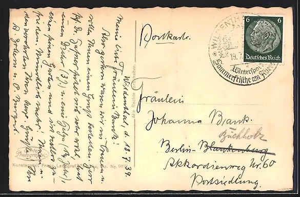 alte Ansichtskarte, gelaufen 1939, guter Zustand