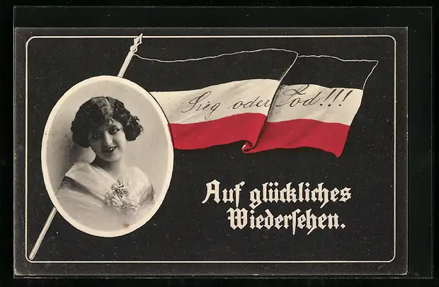 AK Auf glückliches Wiedersehen, Kaiserreichsfahne