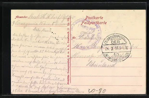 alte Ansichtskarte, gelaufen 1915, guter Zustand