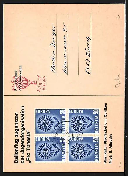AK Aufbau eines Ballons, Pro Tunesia, Stempel Ballonpost